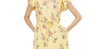 Vestido feminino Maison Jules com estampa floral e mangas esvoaçantes, amarelo, tamanho X-S