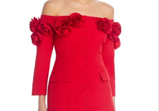Lucy Paris Vestido curto ombro a ombro roseta vermelho