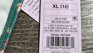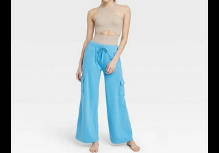 Calcinha de biquíni feminina Wild Fable com patchwork azul e perna alta, com aba dupla lateral, tamanho GG