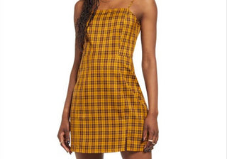 BP. Minivestido Preppy Tecido Marrom Xadrez Tamanho Grande