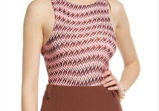 Body com decote redondo alto e recorte aberto em ondas geométricas de peônia rosa, tamanho extrapequeno