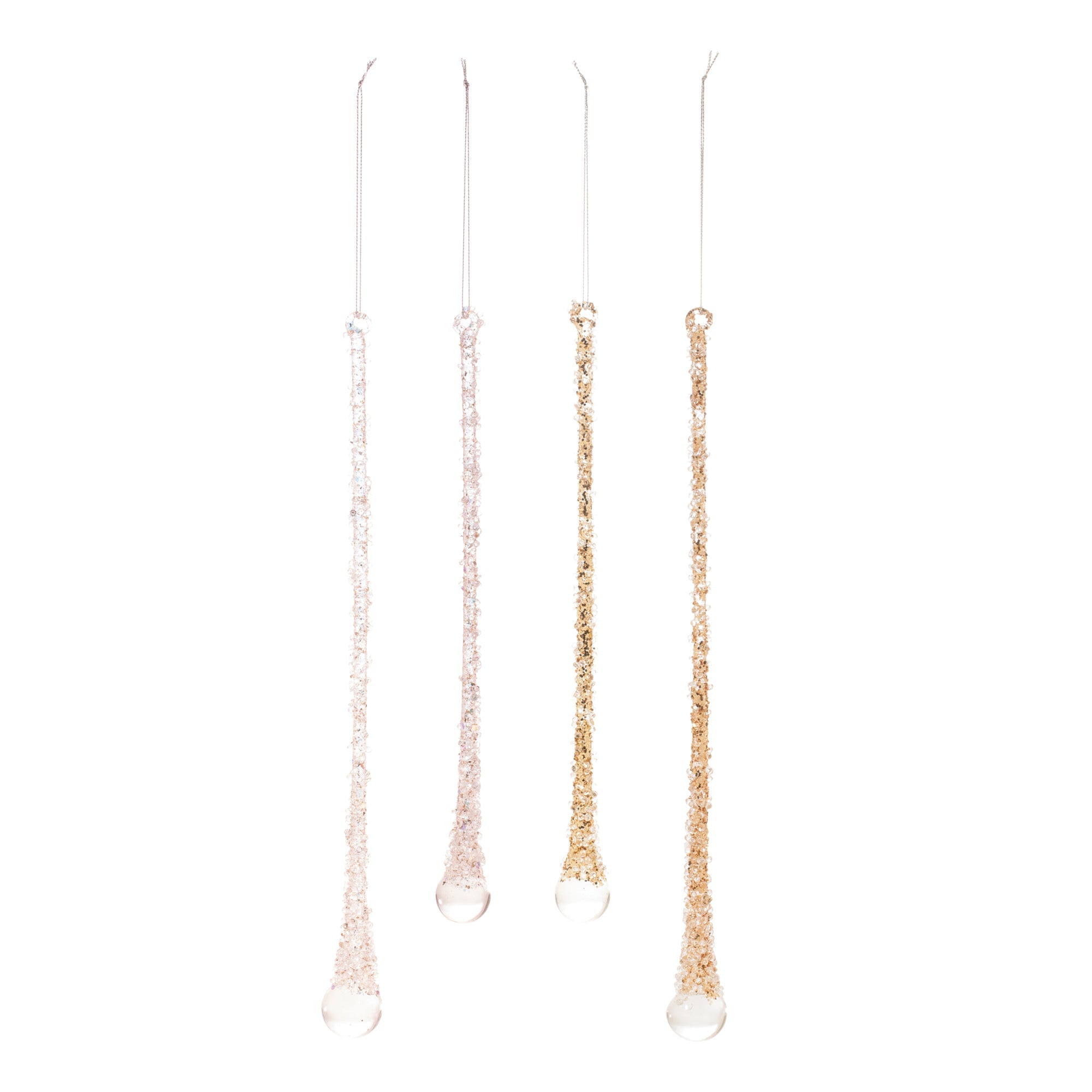 Add shimmering elegance to your holiday décor with this stunning set of 24 Drop Ornaments. Featuring elongated silhouettes in glittering silver and gold finishes, each ornament is crafted from glass to reflect light beautifully. Their graceful taper and radiant texture make them perfect for elevating trees, garlands, and festive arrangements with a touch of glamour.