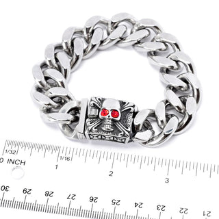 Pulseira Invicta Masculina de Aço Inoxidável com 9" de Elos em Forma de Caveira ou Cruz