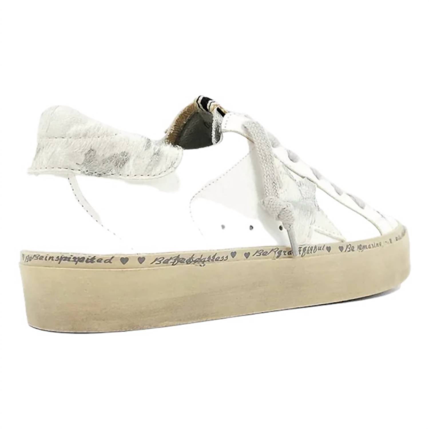 Quando moda e funcionalidade se unem perfeitamente. Conheça o Tênis Feminino Pixie da SHU SHOP, uma adição estilosa e moderna à sua coleção de tênis. Confeccionado em couro sintético na elegante tonalidade White Pony, este tênis plataforma apresenta uma estrela de pelo sintético e detalhe no calcanhar, perfeito para um look athleisure durante os treinos de verão ou passeios de Ação de Graças. Projetado com salto plano e bico arredondado confortável, é ideal para uso fitness ou casual. Este tênis também apresenta um solado levemente desgastado, o que adiciona um charme único ao seu visual.
