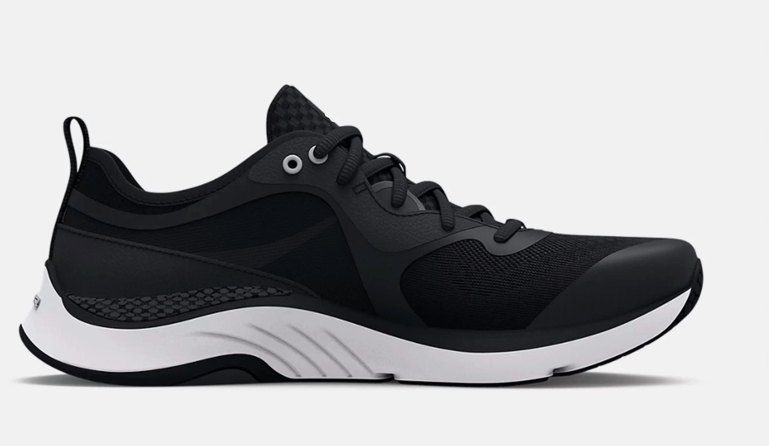 Bonitos, funcionais e confortáveis. Estes tênis atendem a todos os requisitos. Apresentamos o Tênis de Treino Feminino Hovr Omnia da Under Armour, projetado especificamente para os pés femininos, elevando sua experiência de treino. Confeccionado com cabedal em mesh respirável, este tênis garante suporte estratégico e maior estabilidade com painel lateral moldado e tira interna. A tecnologia de amortecimento responsiva UA HOVR™ minimiza o impacto, devolve energia e impulsiona você para a frente, enquanto o solado de borracha durável oferece aderência flexível onde você mais precisa. Ideal para sessões de fitness e treino, este tênis preto apresenta bico arredondado, proporcionando estilo e conforto.