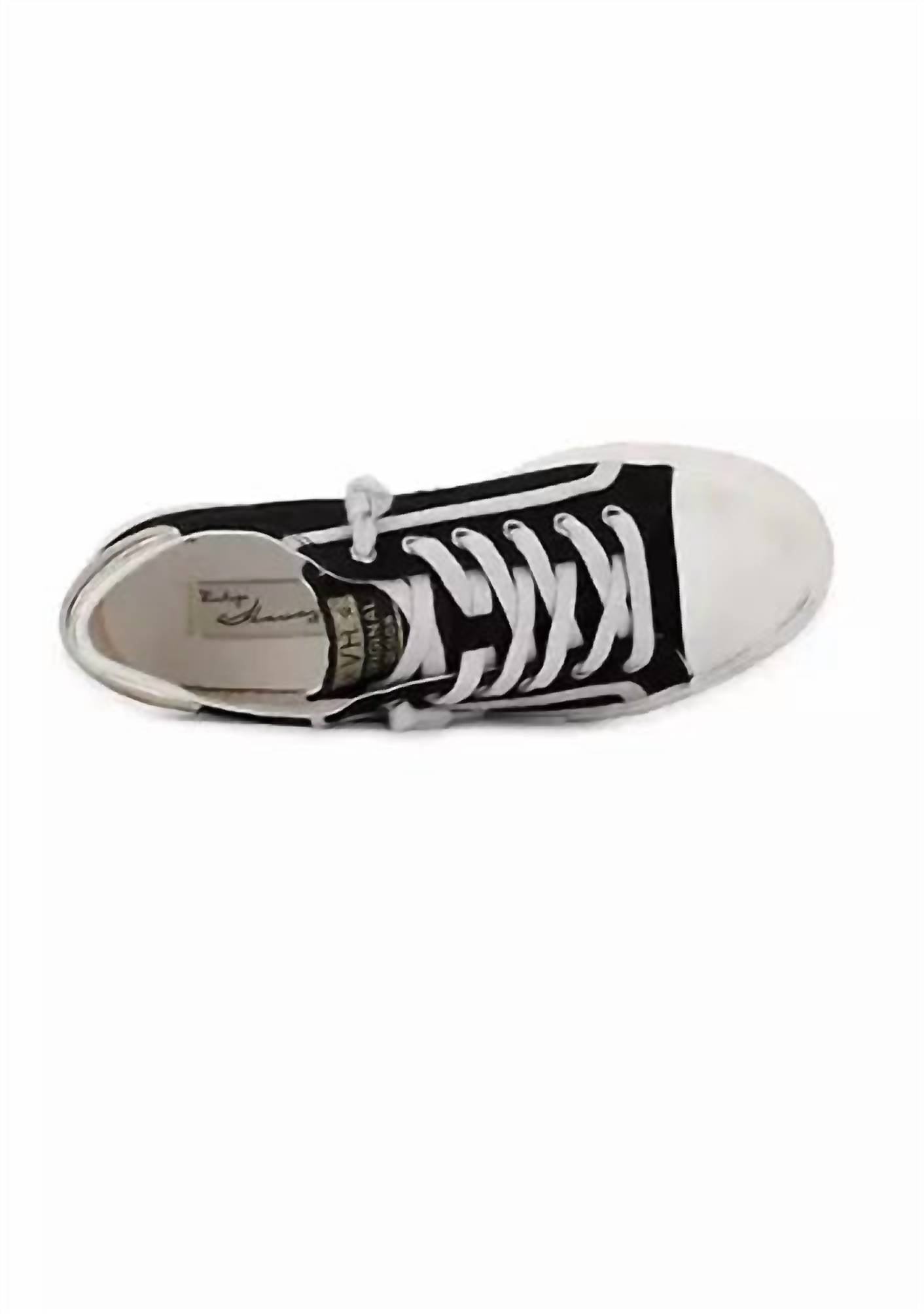 Quando moda e funcionalidade se unem perfeitamente. Incremente sua coleção de tênis com o Tênis Feminino Alive da Vintage Havana, projetado para aliar estilo e conforto. Confeccionado em uma mistura de lona, ​​sintético, couro e camurça, este tênis apresenta um estilo slip-on chique e despojado. Com um destaque em forma de estrela dourada sobre uma lona preta elegante, ele oferece um visual ousado e versátil. Aproveite o benefício adicional de um solado exclusivo com tração e um ajuste que se mantém fiel ao tamanho.