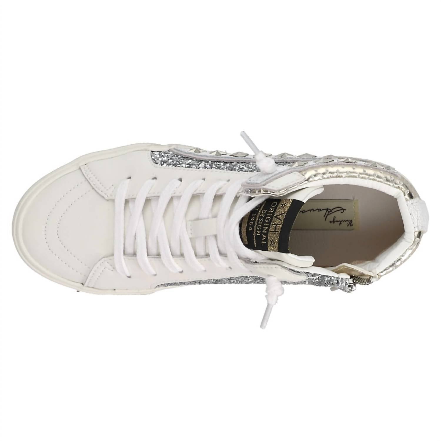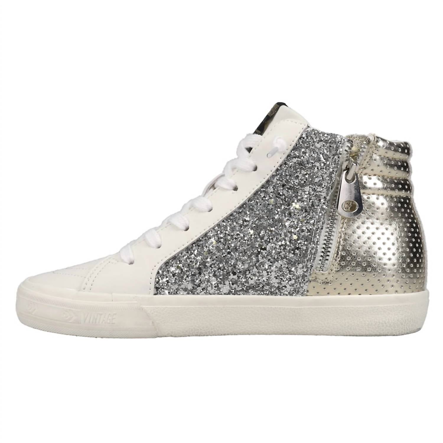 Conheça o Tênis Feminino Bailey Glitter de Cano Alto da Vintage Havana, uma adição deslumbrante à sua coleção de calçados com um design vibrante em dourado e prata. Este tênis tem bico redondo estiloso e é perfeito para chamar a atenção. Com seus chamativos detalhes em glitter dourado cromado e prateado, ele irradia glamour a cada passo. Perfeito para mulheres que buscam um toque chique e descontraído aos clássicos tênis de cano alto.