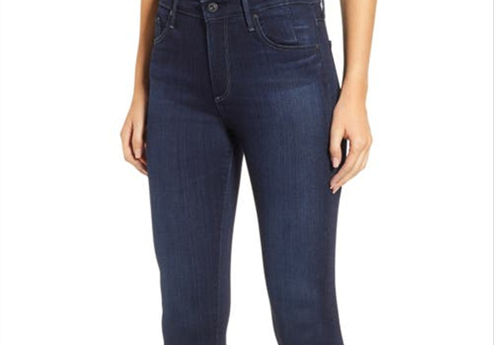 Calça jeans skinny de cintura alta com lavagem azul versátil | - Ajuste elegante e elegante para uma silhueta simplificada | - Ideal para looks casuais e elegantes.