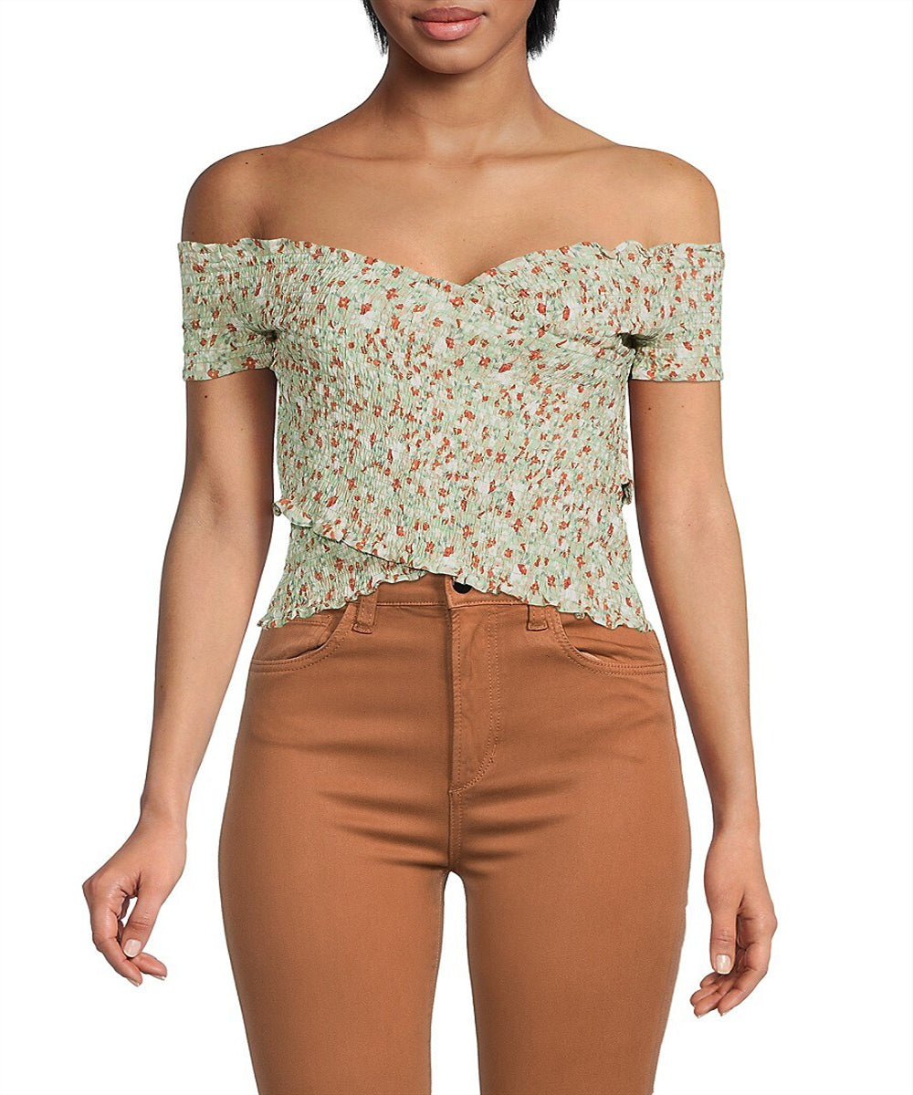 BB Dakota Feminino Light Sage Ombro a Ombro Smocked Crop Top Tamanho Grande
