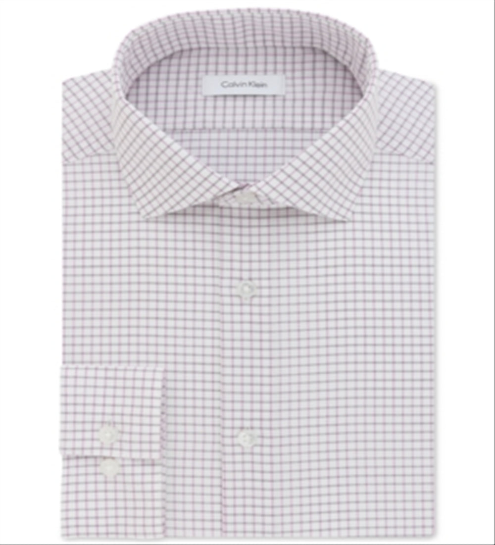 Camisa social masculina Calvin Klein Steel Slim-Fit, sem necessidade de passar, xadrez rosa, roupas masculinas - camisas sociais