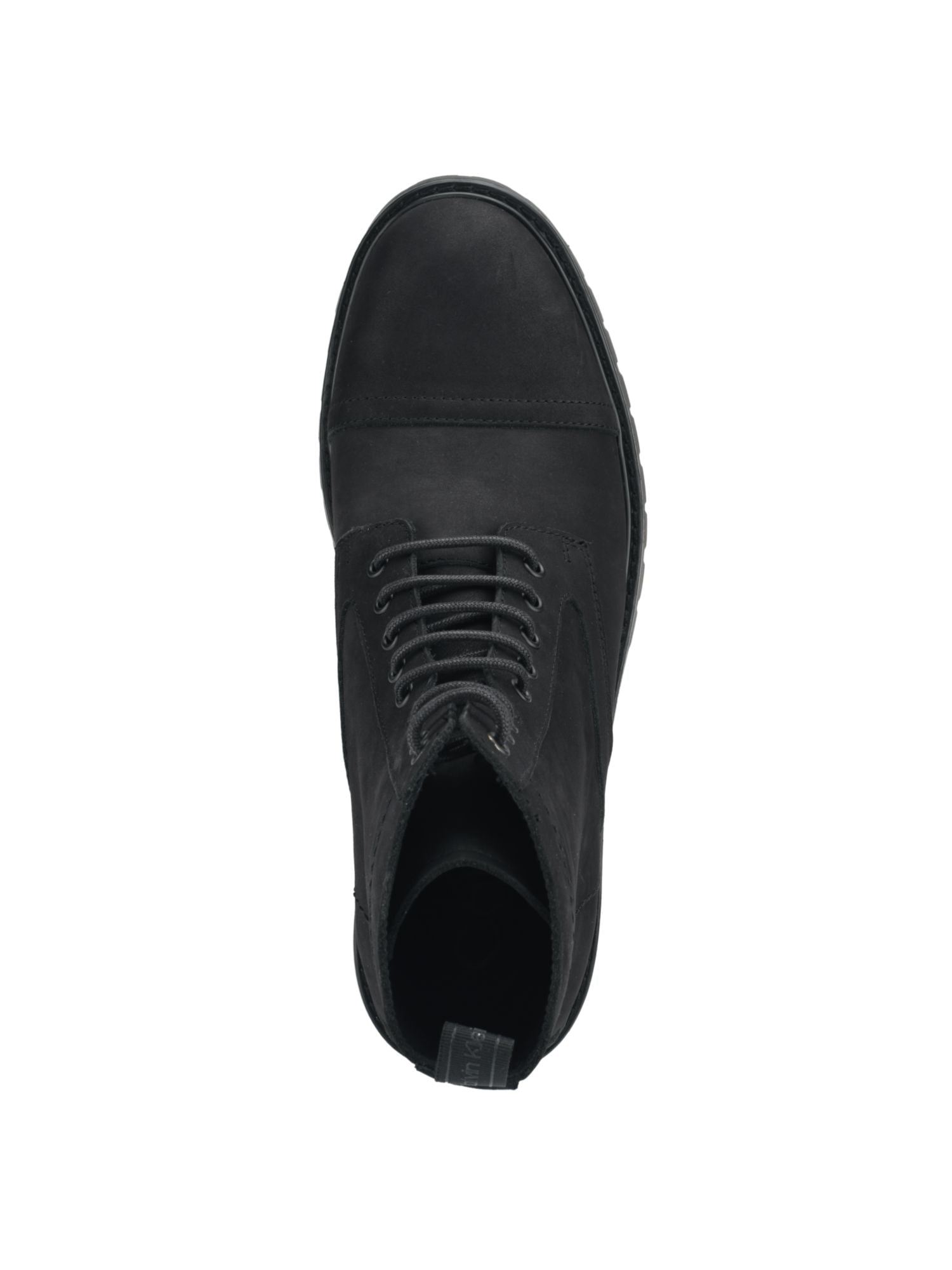 Cabedal de couro | Estilo com cadarço | Solado de borracha | Palmilha acolchoada | Detalhes da marca | Costura durável | Acabamento preto estiloso | Importado | Design de cano alto | Antiderrapante