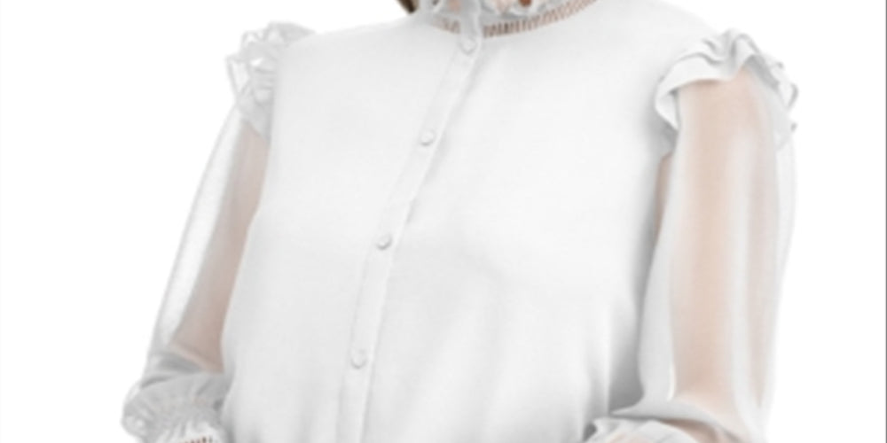 Blusa Calvin Klein Feminina Chiffon com Babados, Branca, Tamanho Grande
