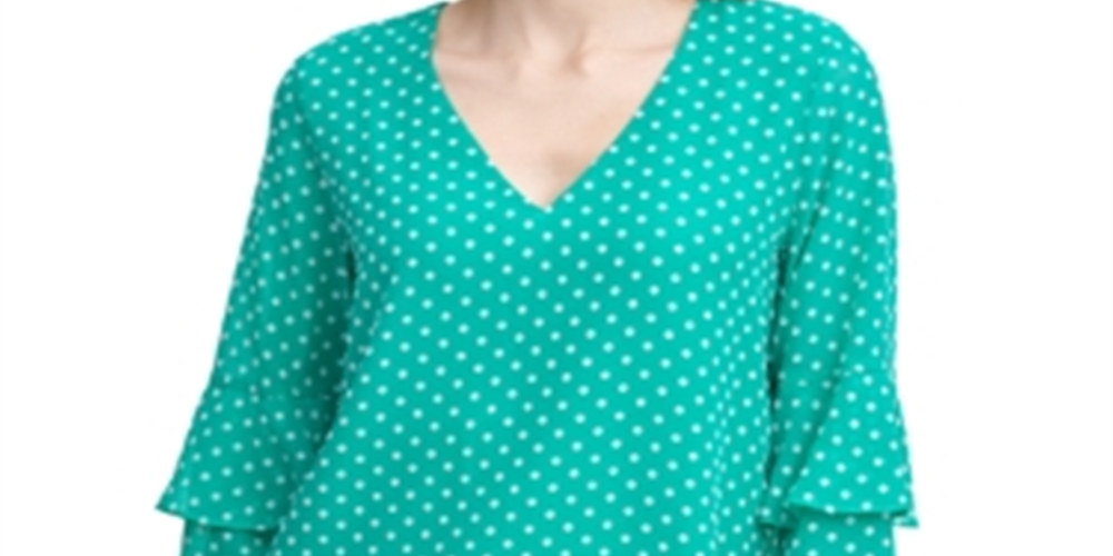 Blusa Calvin Klein Feminina com Bolinhas e Mangas em Camadas, Verde, Tamanho Médio