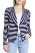 Blazer Caslon Feminino Azul Marinho-Branco Josephine Listrado Gola Drapeada Tamanho P