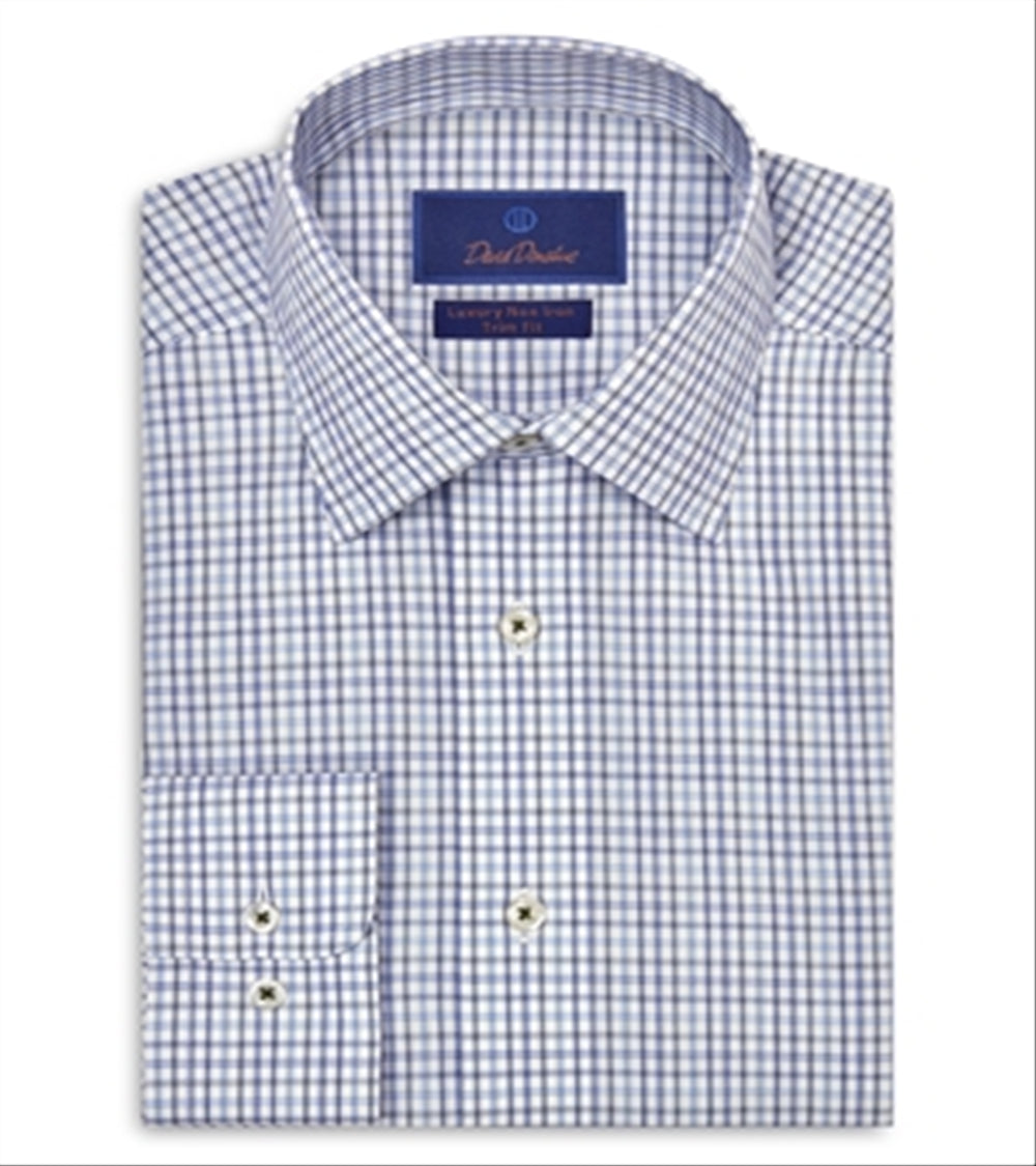 Camisa de luxo estampada em popeline David Donahue Trim Fit, não passável, azul, tamanho 16,5 x 32-33
