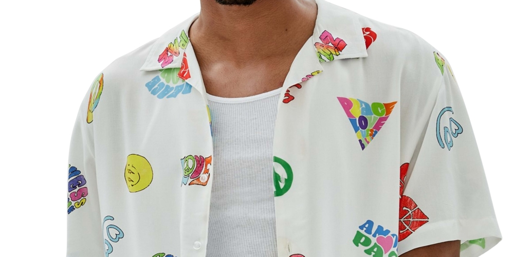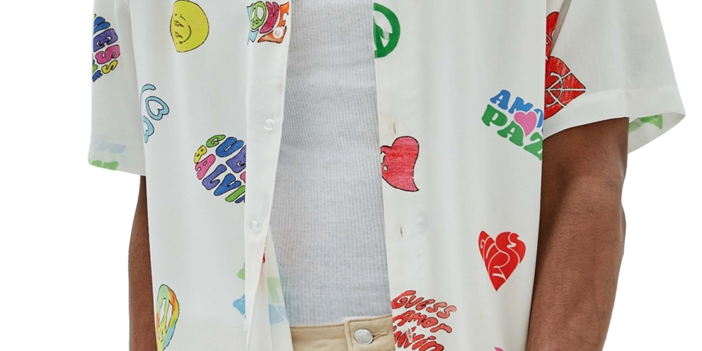 Dê ao seu look casual um toque despreocupado com os motivos de paz, amor e felicidade estampados nesta camisa Paz Camp da GUESS x J Balvin