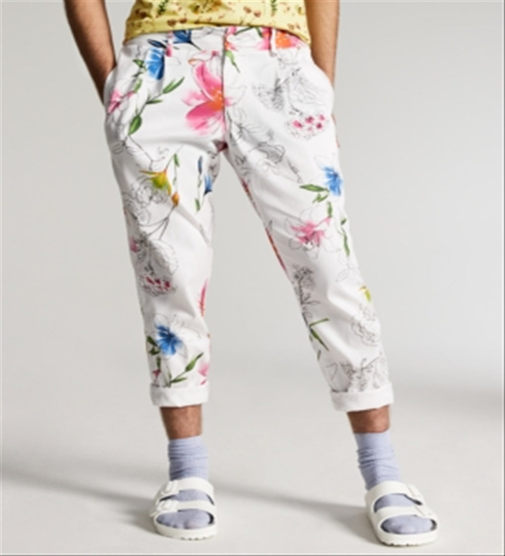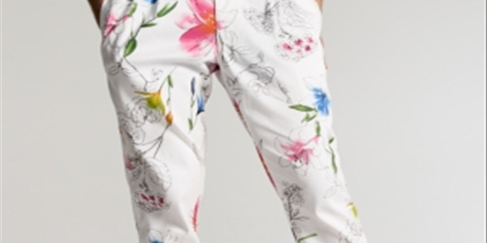 Todo dia é férias quando você veste estas calças florais macias e justas da INC International Concepts®, com bainha curta e punhos e estampa colorida por toda a peça. Corte justo, cintura elástica com cordão, dois bolsos laterais para as mãos.