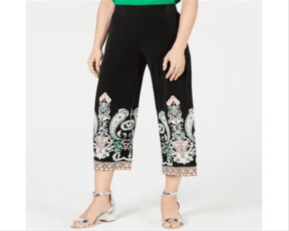 Calça feminina curta preta de perna larga da INC International Concepts, tamanho pequeno e pequeno