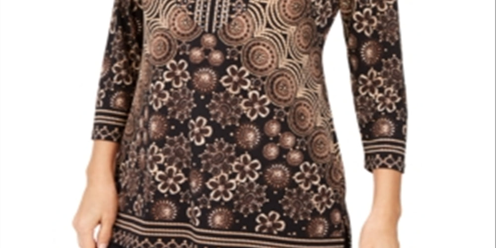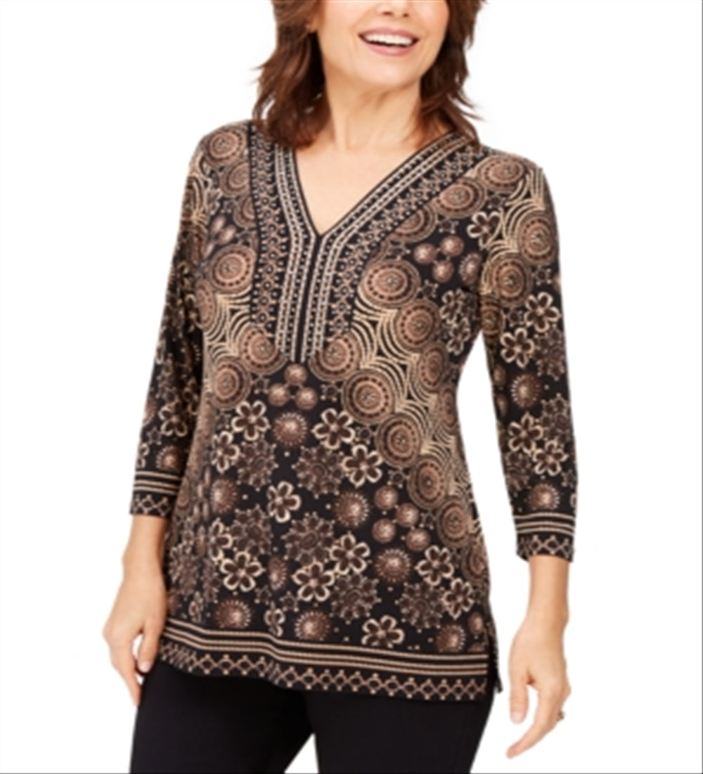 Perfeito para combinar em todas as estações | este top da coleção JM com decote em Y adornado e mangas 3/4. | Aproximadamente 27 de comprimento | Decote em Y | Decote adornado | Mangas 3/4