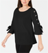 A JM Collection oferece um toque de elegância com este top de decote redondo com ilhós rendados nas laterais das mangas 3/4. | Acabamento no quadril| Decote redondo| Acabamento com ilhós rendados nas laterais das mangas| Mangas 3/4 boca de sino|