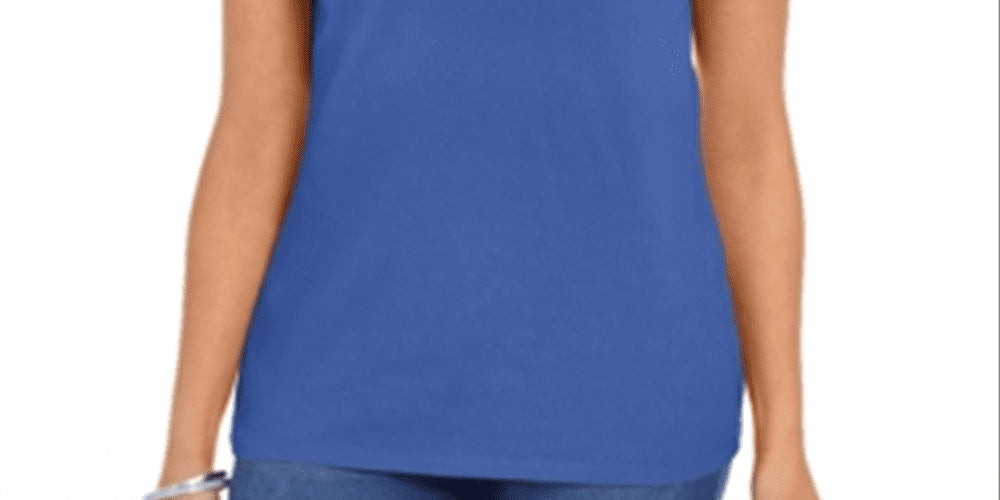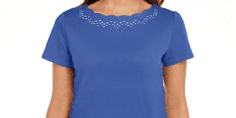 Camiseta feminina Karen Scott de algodão azul com gola recortada, tamanho médio