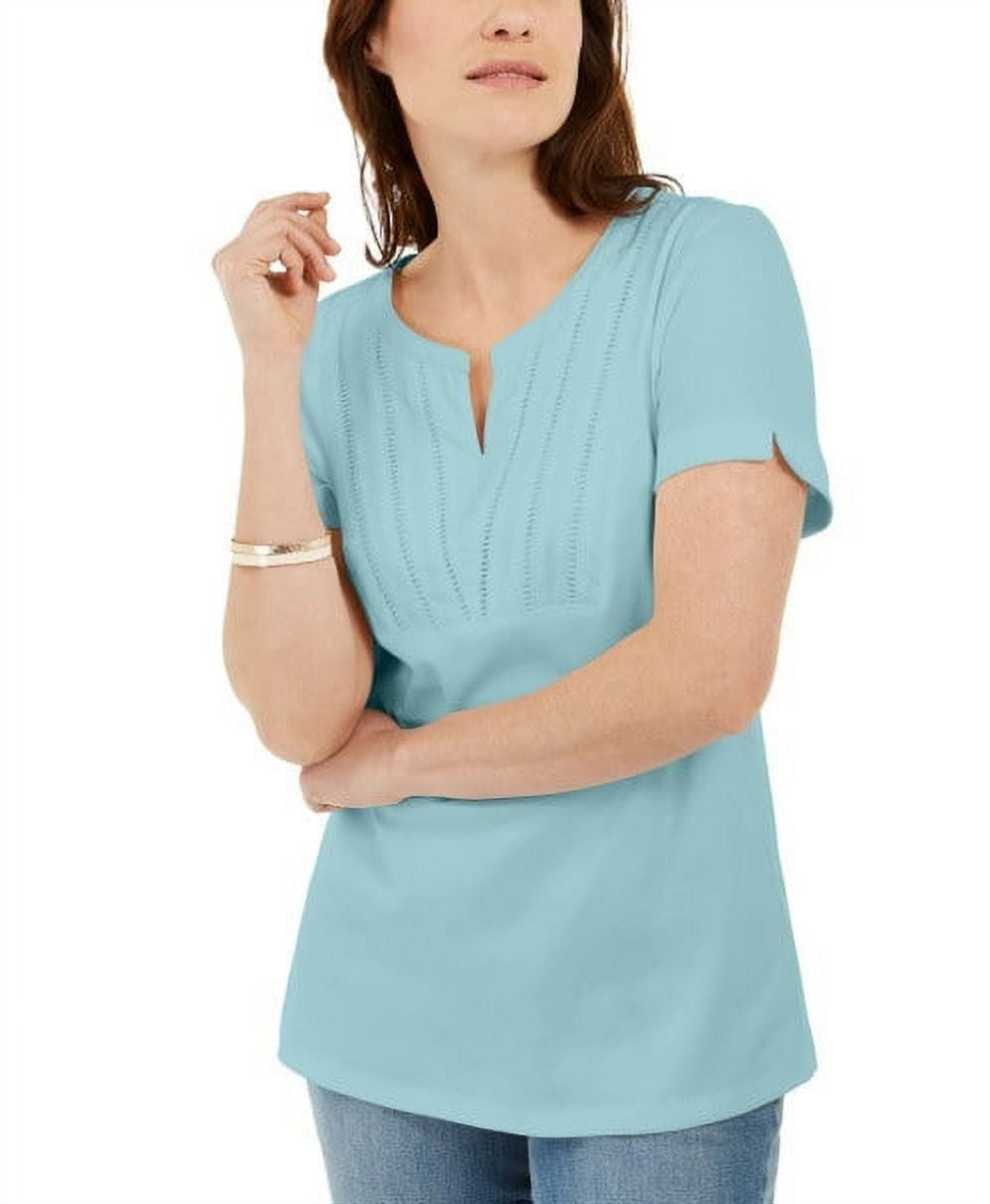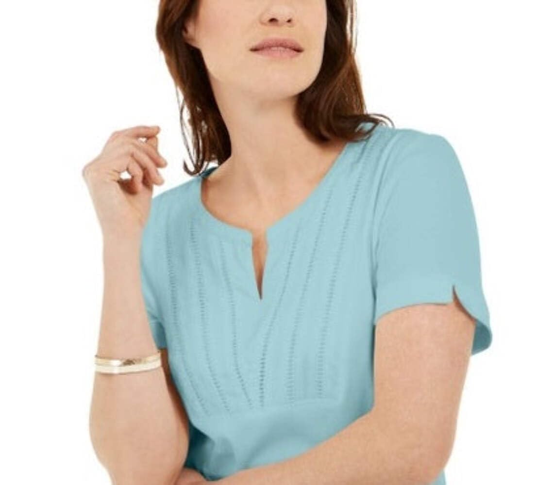 Karen Scott Blusa Feminina Azul Tecido Gola Dividida Tamanho P