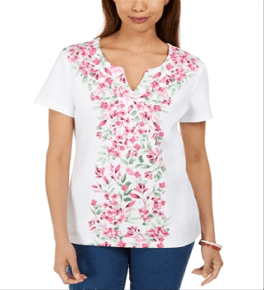O Top Karen Scott Floral Print é uma adição encantadora ao guarda-roupa de qualquer mulher, combinando uma estampa vibrante com um caimento confortável, perfeito para o dia a dia. Desenhado em um lindo tom rosa, este top apresenta um design floral chique que irradia feminilidade e estilo. Feito sob medida para tamanhos pequenos, ele realça graciosamente a silhueta da usuária, garantindo facilidade de movimento. Feito de um tecido macio e respirável, este top é adequado para dias quentes e ensolarados ou usado por baixo de uma jaqueta durante os meses mais frios. O artesanato dedicado da Macy's garante não apenas uma peça elegante, mas também uma peça durável e fácil de cuidar, tornando-o a escolha ideal para quem busca estilo e praticidade em suas escolhas de moda. Com seu visual clássico e versatilidade, este top pode ser combinado com shorts, saias ou jeans, proporcionando infinitas possibilidades de looks.