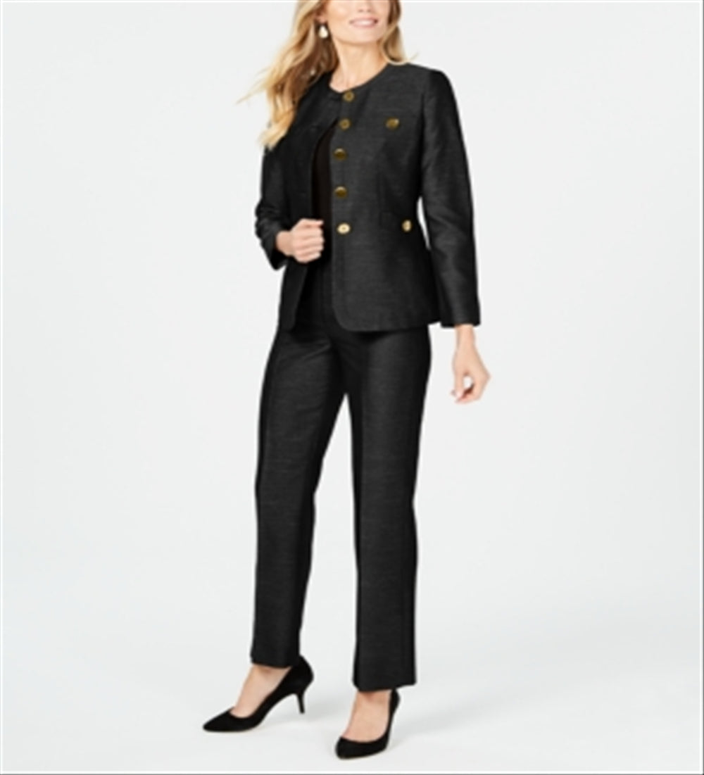 Le Suit Feminino Detalhe de Botão Pantsuit Preto Tamanho 18