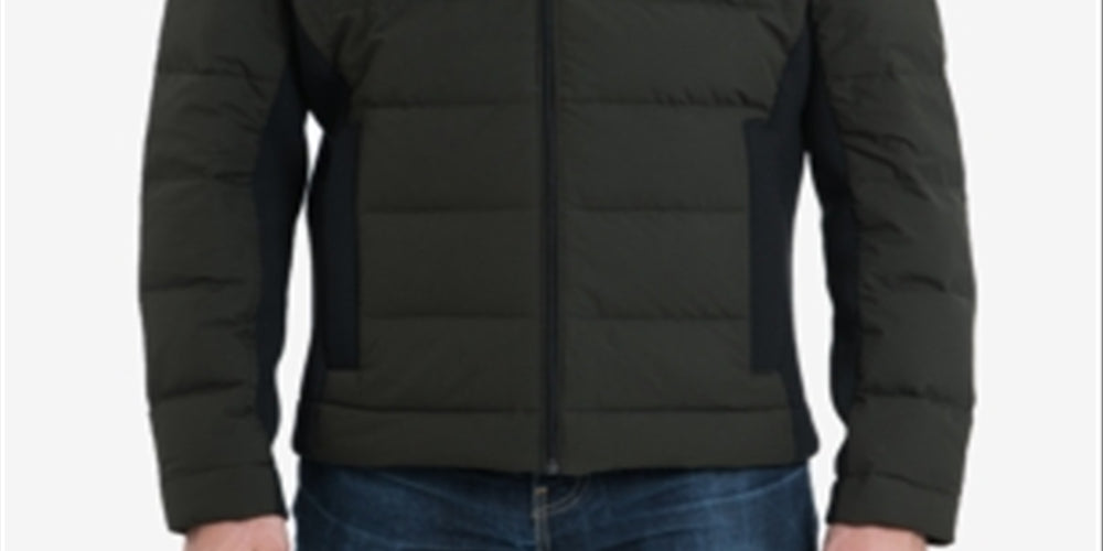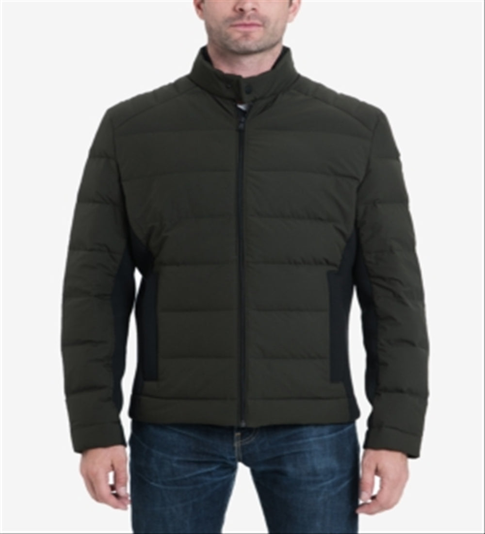 Jaqueta acolchoada masculina Michael Kors com zíper completo e mix de mídia, verde, tamanho XX-G