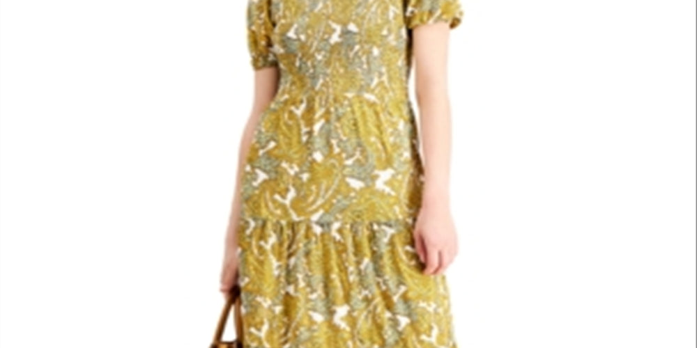 Uma estampa paisley clássica define a estética elegante deste vestido midi em corte A da Michael Kors com franzidos e painéis em camadas na saia