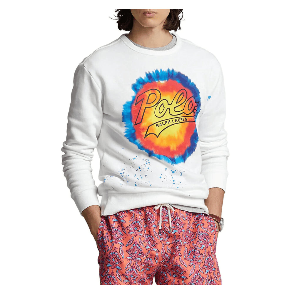 198,00 Ralph Lauren Moletom masculino com gola redonda e logo tie-dye em lã | Branco | G