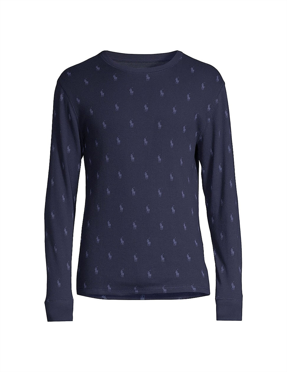 Tecido 100% algodão | Design de malha waffle | Ajuste clássico | Decote arredondado confortável | Estilo de manga comprida | Tecido respirável | Logotipo bordado exclusivo | Lavável à máquina | Tons de azul-marinho e azul-marinho claro | Ideal para sobreposições