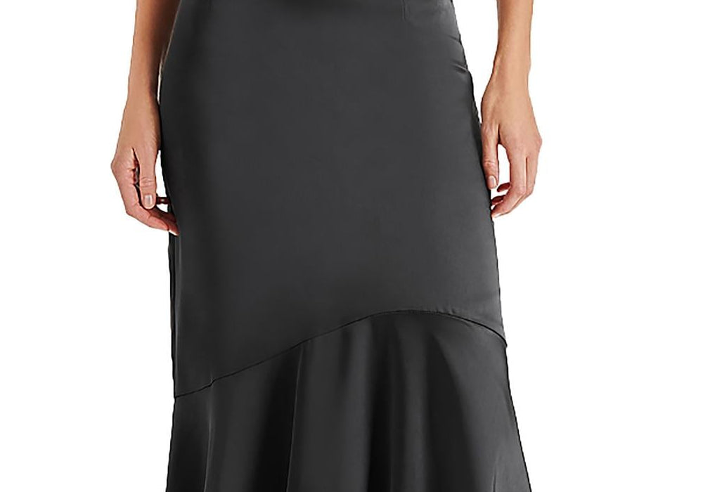 Saia longa feminina | Assimétrica | Zíper oculto nas costas | Casual | Saias femininas casuais | Material: 100% poliéster | China
