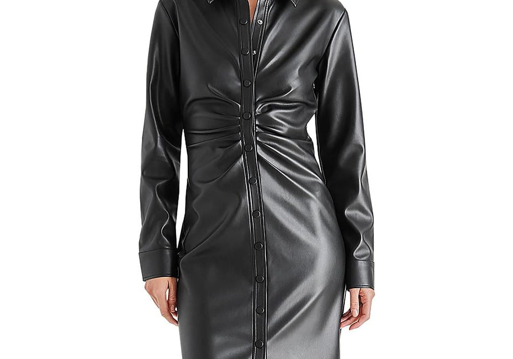 Vestido-camisa feminino | Couro sintético | Midi | Festa | Vestidos femininos de festa | Material: 100% poliuretano | China
