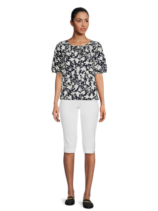 Calça Capri Feminina RealSize 17 Stretch Bling Branca Tamanho G