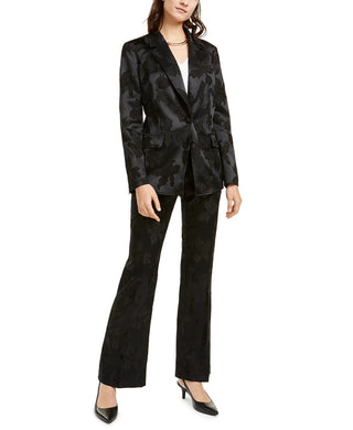 Blazer feminino Alfani com estampa floral em jacquard e cetim preto, tamanho extragrande