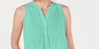 Blusa feminina verde sem mangas Charter Club, tamanho médio