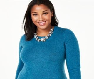 Suéter de cashmere com gola redonda feminino Charter Club, azul, tamanho 3X