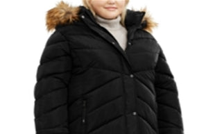 Casaco acolchoado com capuz e acabamento em pele sintética Madden Girl Junior, preto, tamanho 3X