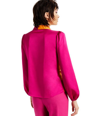 Blusa feminina com blocos de cores e frente torcida, tamanho grande, rosa, da INC International Concepts