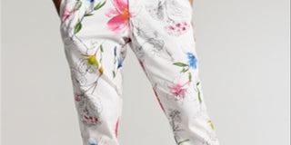 Calças afuniladas florais slim fit masculinas da INC International Concepts, tamanho XX-G, brancas