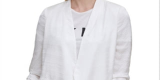 Blazer feminino DKNY sem gola e manga franzida, branco, tamanho pequeno