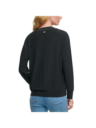 Moletom feminino DKNY com frente de couro sintético, preto, tamanho médio