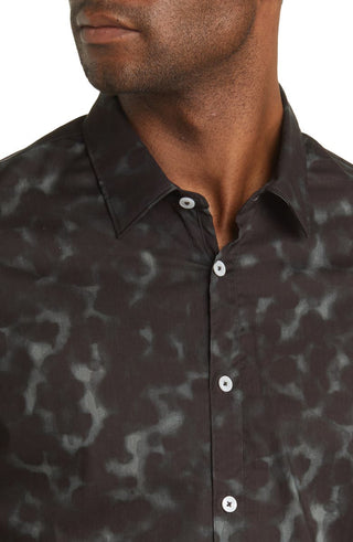 Camisa elástica masculina Good Man Brand On-Point com botões, estampa floral toscana preta, tamanho extragrande