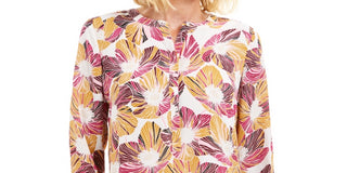 JM Collection Top feminino pequeno estampado com pregas nas costas, roxo PS