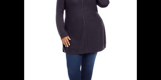 Suéter túnica feminino com costura frontal plus size preto, tamanho 3X
