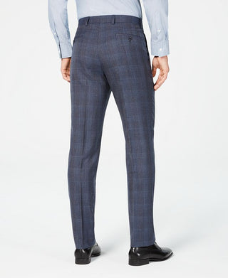 Calça de terno xadrez elástica para airsoft masculina Michael Kors Classic Fit, azul, tamanho 33x32