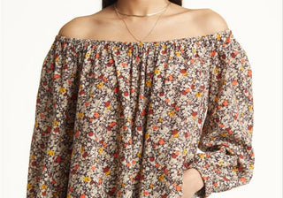 Treasure & Bond Blusa franzida ombro a ombro marrom-marfim Cally Floral tamanho grande