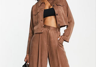 Calças largas listradas Topshop em marrom, tamanho 10 EUA