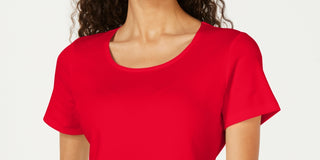 Karen Scott Blusa Feminina de Algodão com Decote Redondo, Vermelha, Tamanho Pequeno Médio
